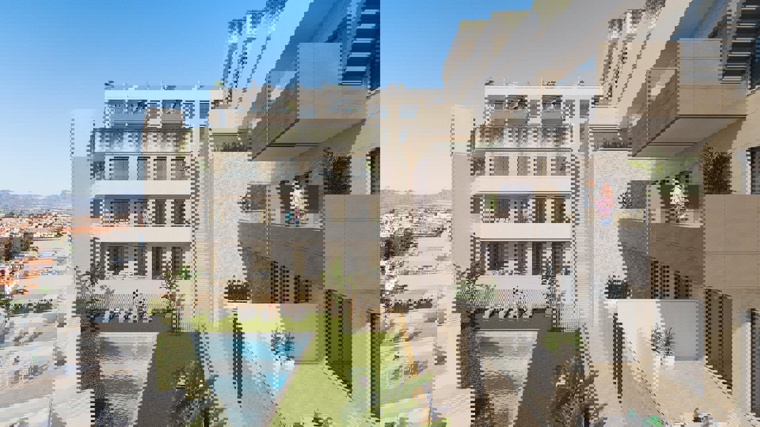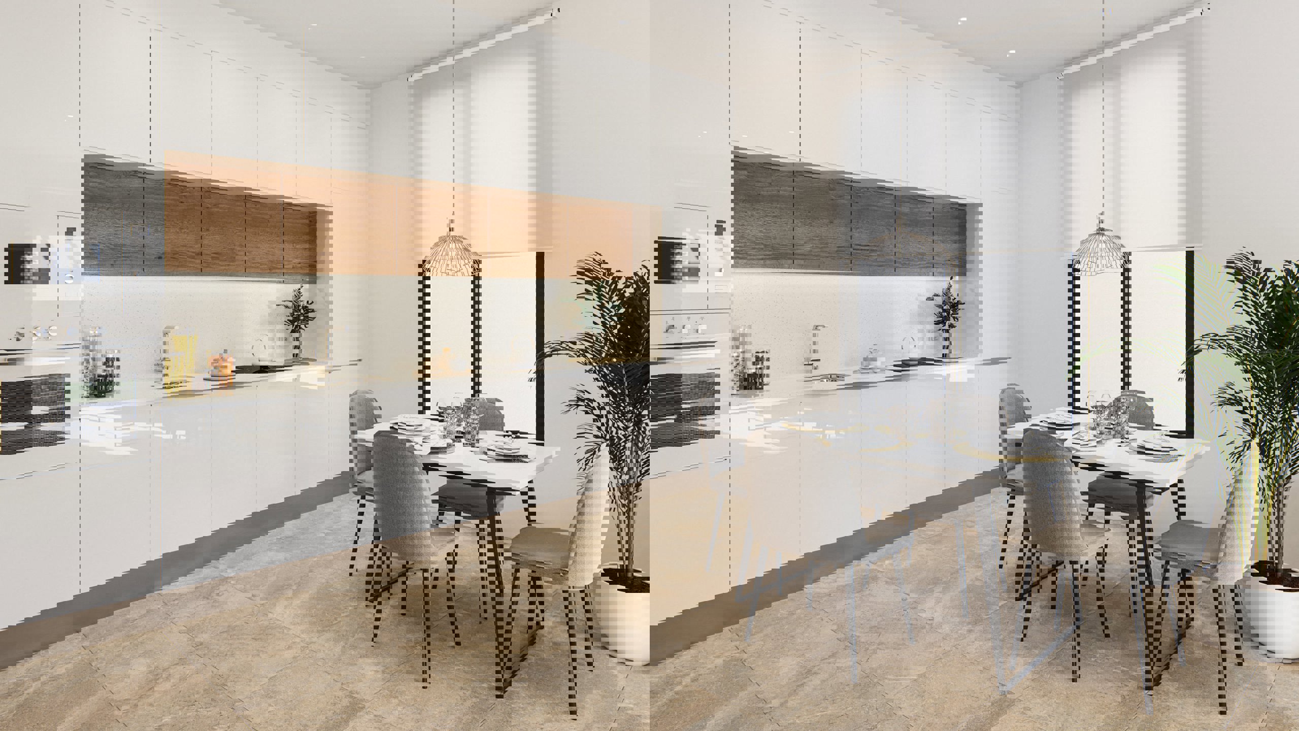 Chaque appartement dispose d’une grande terrasse, quel que soit l’étage choisi. Les appartements du dernier étage jouissent en outre d’une grande terrasse en toiture avec cuisine d’été. Avec leurs deux ou trois chambres, ils offrent un espace de vie confortable, lumineux et soigneusement aménagé avec les meilleurs parachèvements. Volets électriques dans les chambres, placards sur mesure, cuisine équipée (réfrigérateur intégré, plaque à induction, hotte, four, micro-ondes et lave-vaisselle intégré), pré-installation de la climatisation sont compris dans le prix.