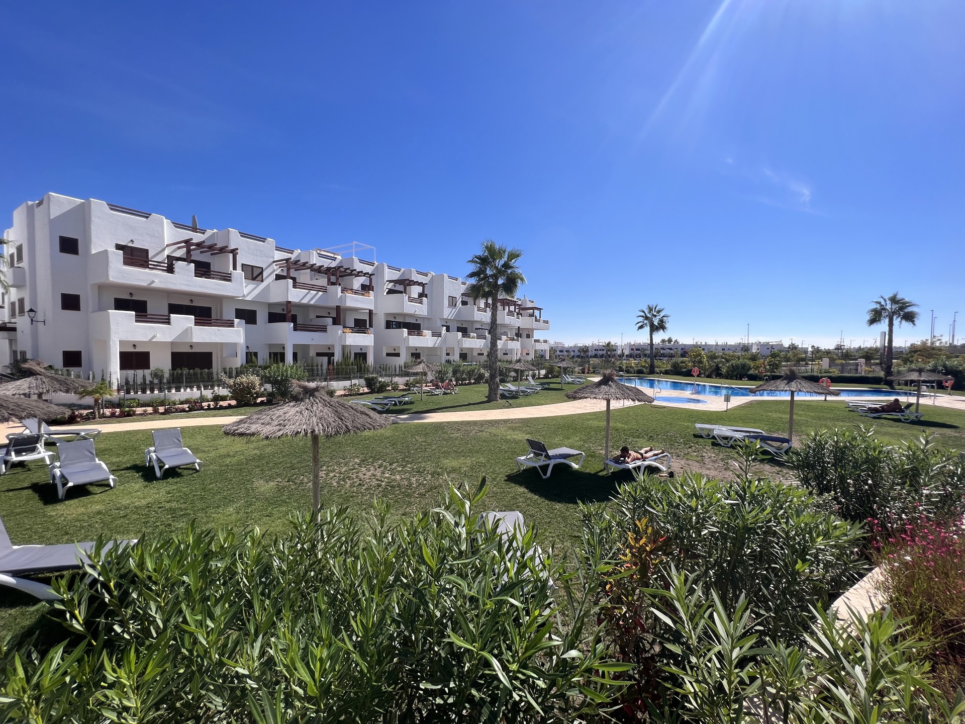 Ces appartements 2 chambres avec terrasse, jardin / solarium et parking au sous-sol se situent à Mar de Pulpi, 600m de la plage de Los Nardos à San Juan de los Terreros. Les zones communes de ce complexe disposent de grands jardins avec piscine commune et jacuzzi, bordés par une large prairie d’herbe naturelle avec des douches et des parasols de bruyère. Ces espaces communs généreux comportent également une aire de jeux pour enfants, le tout dans un périmètre de sécurité fermé. A proximité, vous bénéficierez de toutes les commodités : restaurants, magasin, salles de sports…