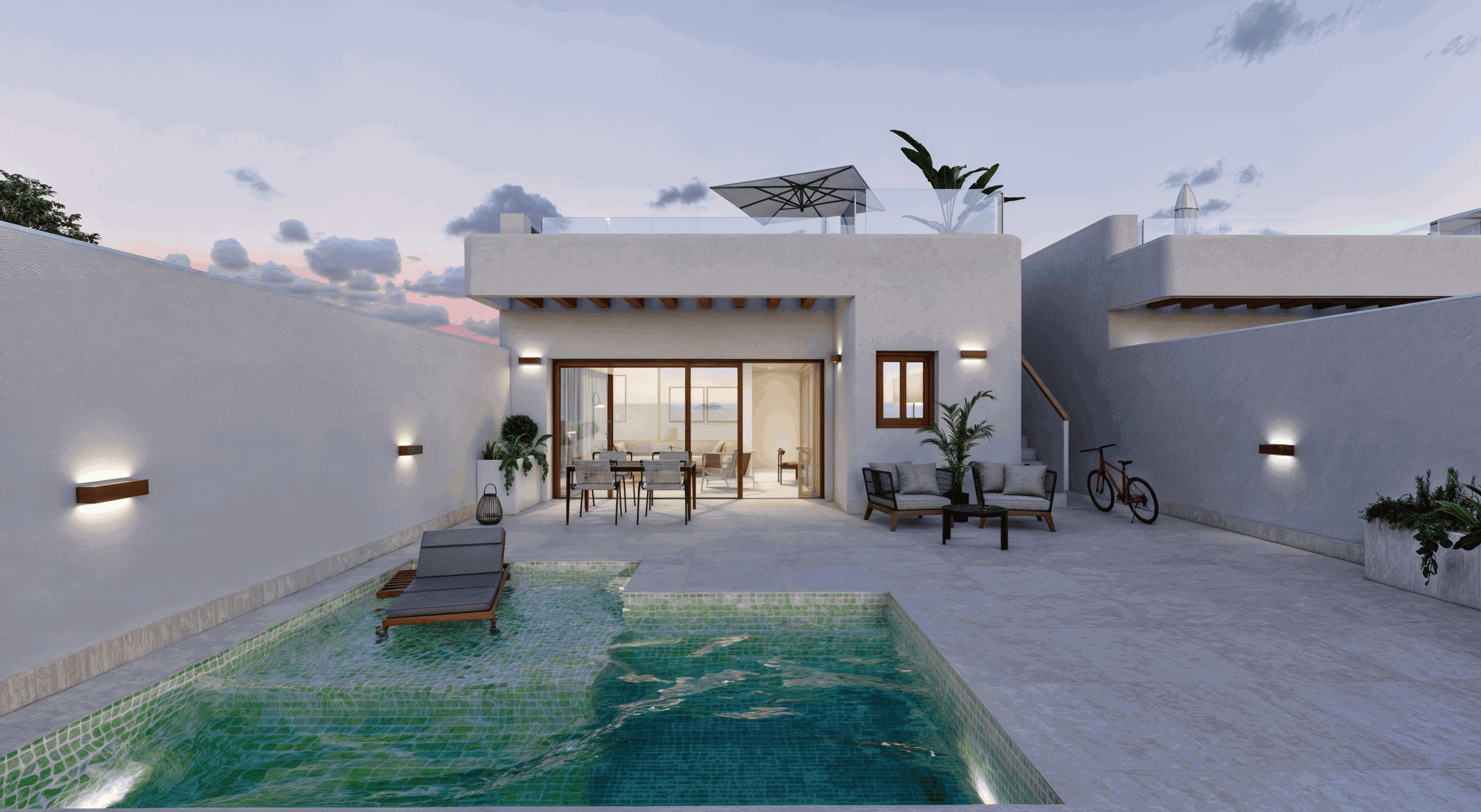 Amoureux de l’Espagne? Découvrez ces villas quatre façades situées dans le village typique de Torre Pacheco, à une dizaine de kilomètres des plages de la Costa Blanca. Sur des parcelles comprises entre 162 et 198 m2, chaque villa propose de 2 à 3 chambres pour une superficie habitable allant de 73 à 90 m2.