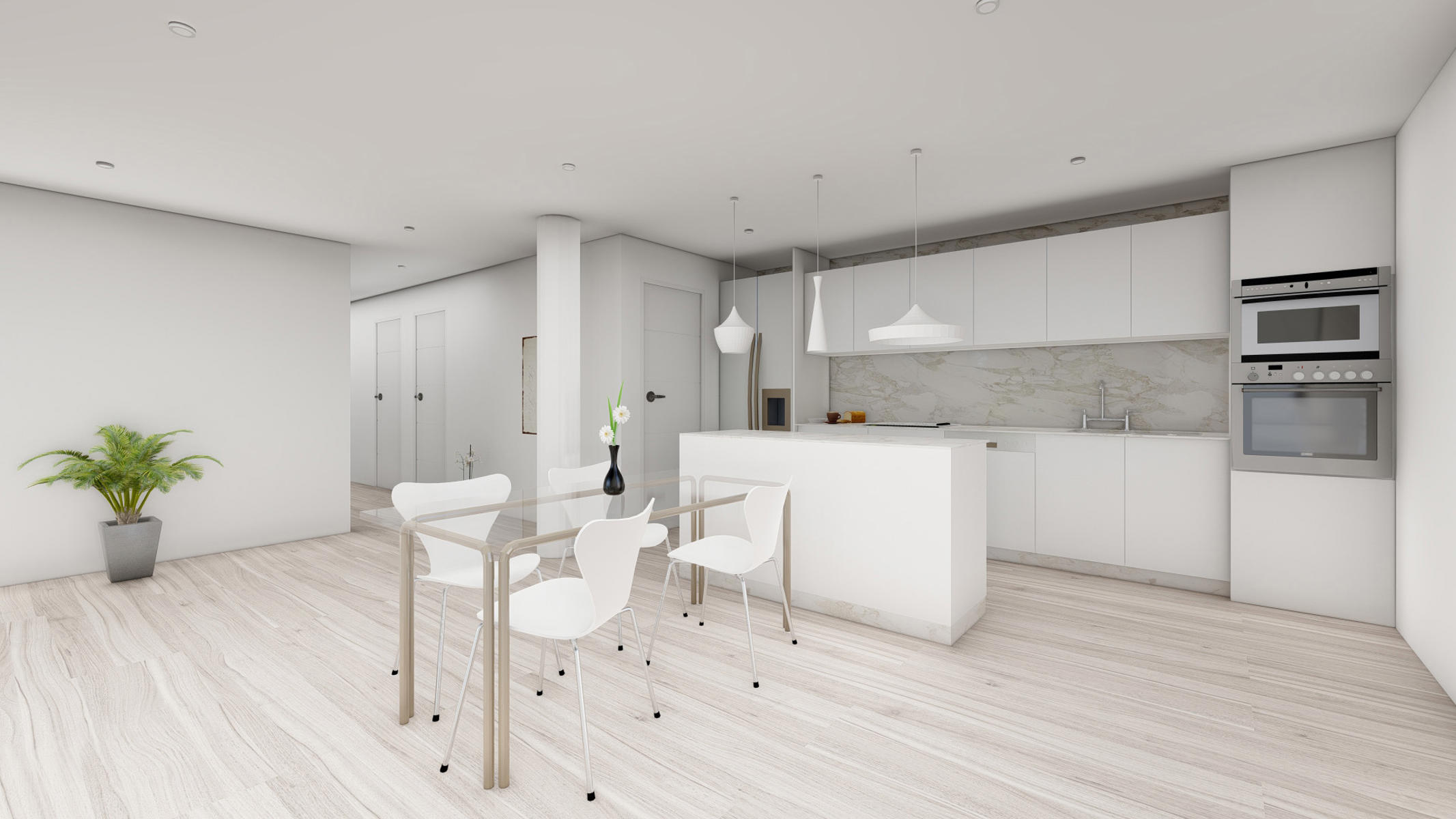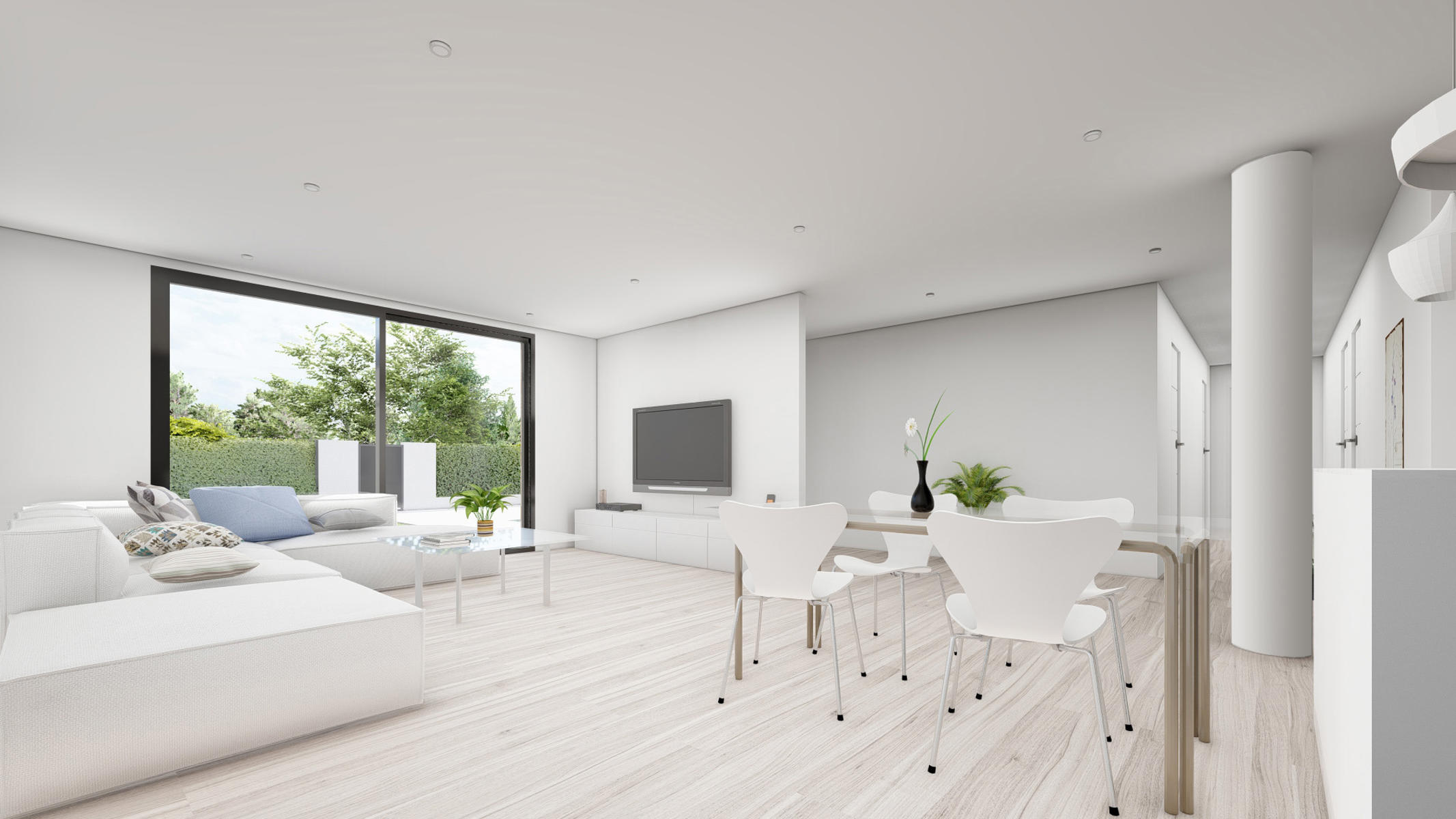 Chaque villa dispose de 3 chambres avec grands placards encastrés, de 2 salles de douche, d’un grand séjour avec cuisine full-équipée (réfrigérateur, plaque de cuisson, four et micro-ondes en colonne, hotte et lave-vaisselle intégré). Pré-installation de la climatisation et volets inclus. A voir absolument!
